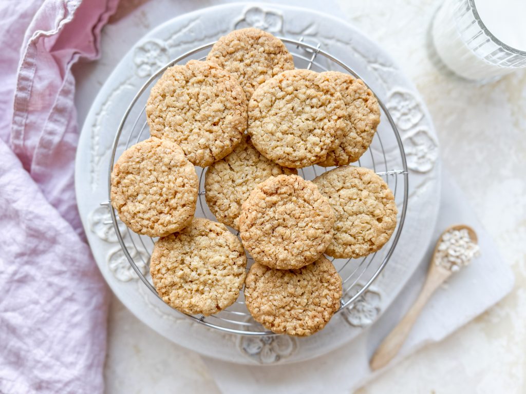 Hobnobs are a classic, quintessential British biscuit; they are oaty, crispy, sweet, with a kick of salt, and can be served as they are or with a chocolate topping. Milk or dark chocolate, your choice. Utterly moreish, I have always loved these biscuits, but I buy them with caution. I simply can’t resist them. Serve with a cup of tea: this is non-negotiable.
