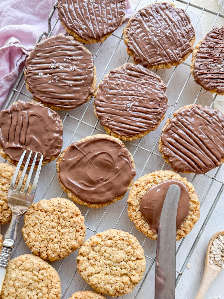 I saw this recipe on an insta post by Hebridean Baker. If you have yet to come across Coinneach MacLeod, I urge you to take a look. He is an international best-selling cookery book author from the Scottish Islands, and he shares fabulous bakes inspired by ‘family recipes, Scottish flavours and the myths & legends of the Hebrides.’ All beautifully photographed and filmed, he combines his love of food with stories and folklores from Scotland and his travels around the globe. His book, The Hebridean Baker at Home: Flavours & Folklore from the Scottish Islands, is available on Amazon. Unusually I made absoluetly no changes to the biscuit recipe, although I did choose milk over dark chocolate for the topping, purely based on my own personal preference.