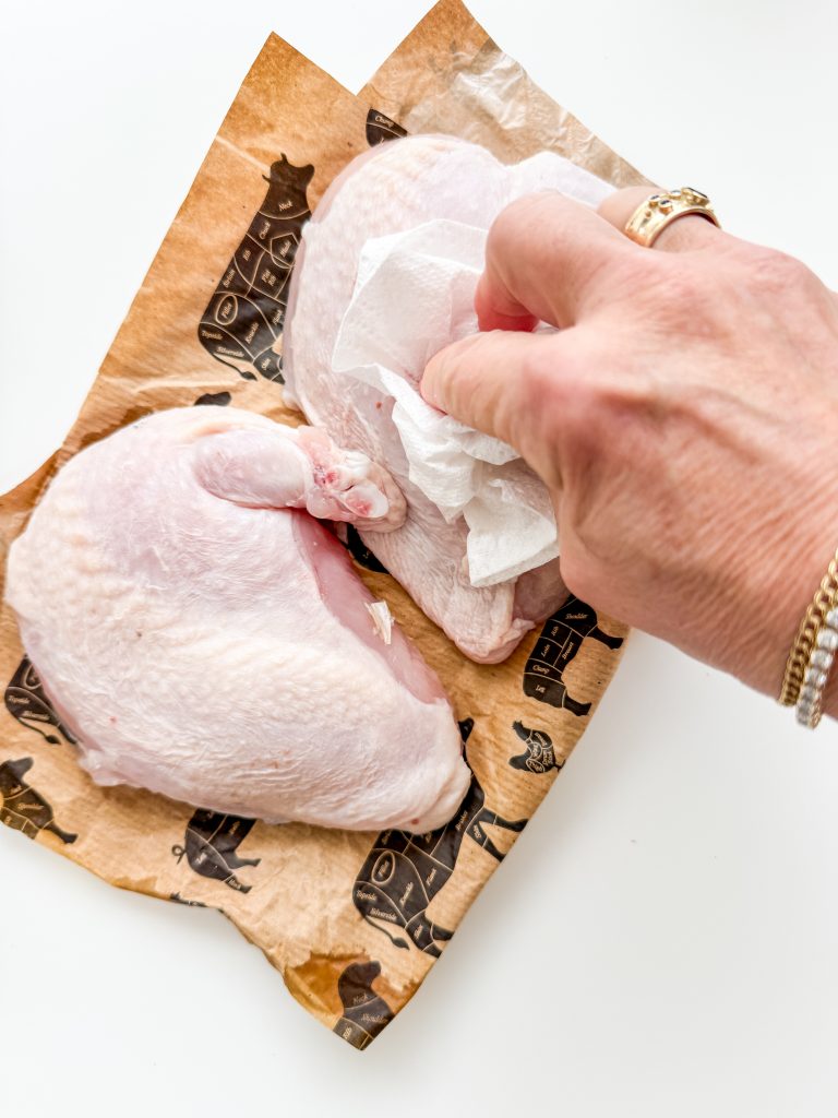 - supremes of chicken (or use breasts), skin on, at room temperature
