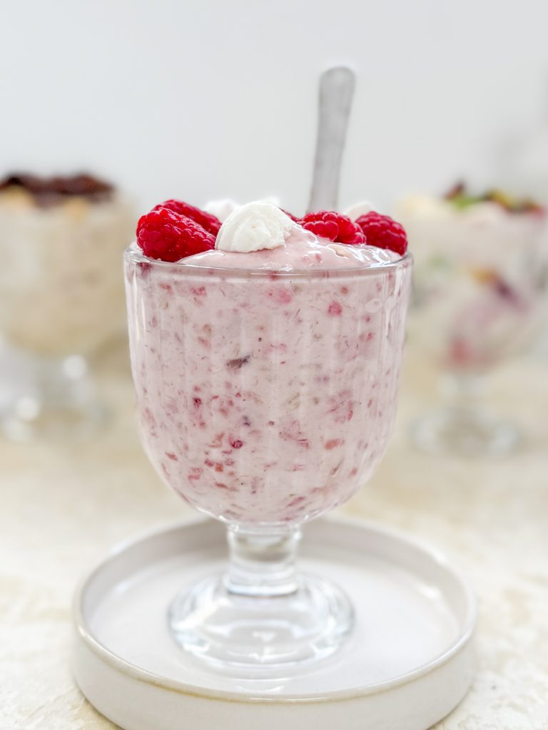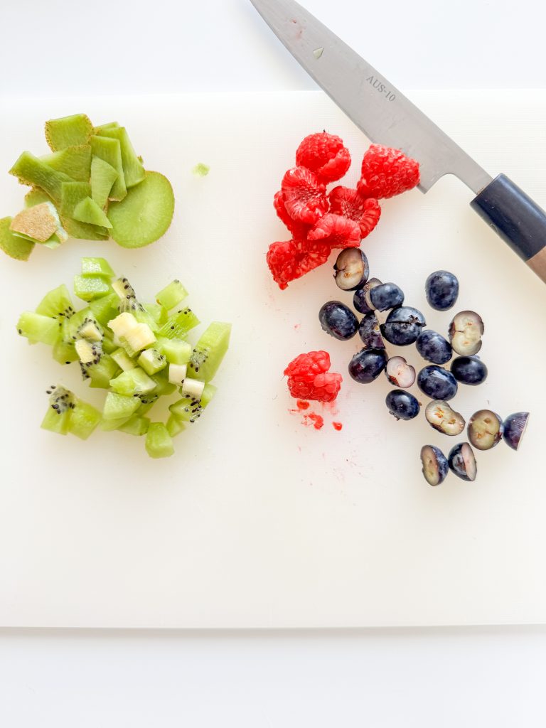 Ingredients Mash Raspberries Swirl Chop fruit Layer yoghurt Layer fruit Finish