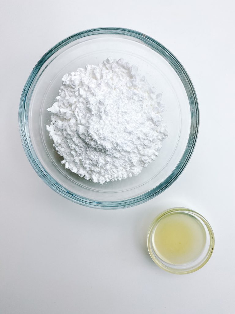 - Icing: slowly add the lemon juice to the icing sugar. Mix thoroughly until you have a thick, but easily pourable, paste.