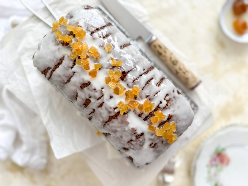 Yes you can! This cake can be served as it is, or, as is my favourite, with a thin drizzle of lemon icing. The zesty, sharp icing really cuts though the sweetness of the cake and complements the deep and spicy flavours. It looks fabulous decorated with the extra chopped stem ginger too.